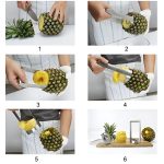 Taie, scoate miezul și feliază ananasul cu ușurință în doar câteva mișcări.