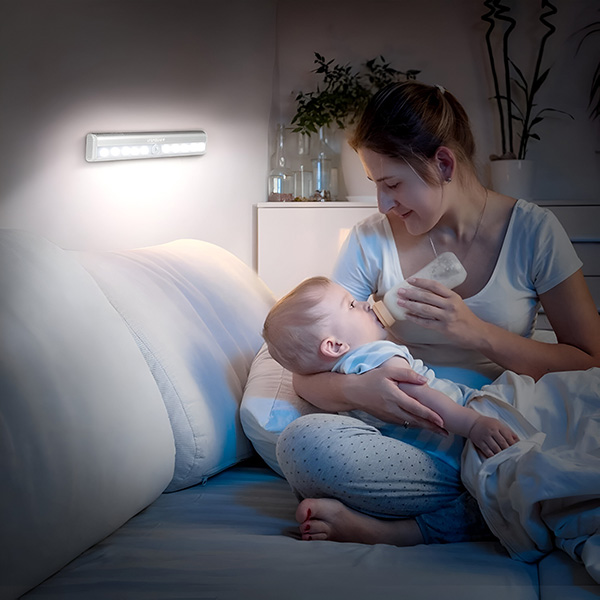 Nu vă mai împiedicați în întuneric! Instalați această lampă lângă pat, astfel încât, când vă treziți noaptea, să se aprindă automat, ghidându-vă în siguranță către baie sau ușă.