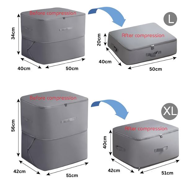 🧳 Comprimați haine, pături și multe altele cu ușurință – nu este nevoie de aspirator.
