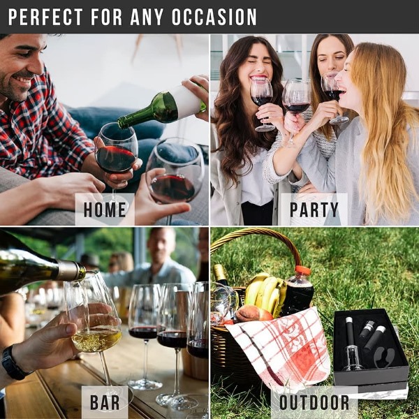 Acest set 4-în-1 include un deschizător cu pompă de aer, un tăietor de folie, un aerator pentru turnare și un dop cu vid pentru o experiență perfectă a vinului.